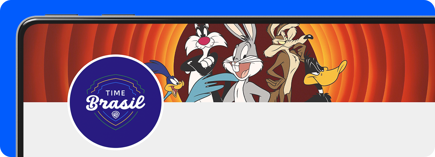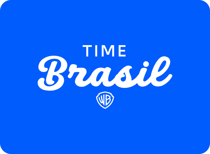 O logotipo Time Brasil combina o escudo clássico da Warner Bros. com a leveza e o carisma do brasileiro. A tipografia cursiva em “Brasil” traz proximidade e descontração, traduzindo o “borogodó” de forma moderna. As linhas em verde, amarelo e azul reforçam a identidade nacional com dinamismo e unidade. O monograma WB assina a marca e conecta o símbolo ao universo Warner.